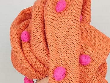 Monki Bella Sweater w kolorze pomarańczowym z ozdobnymi, różowymi pomponami. Sweter ma okrągły dekolt i długie rękawy zakończone ściągaczami. Wykonany jest z miękkiej mieszanki akrylu i wełny, zapewniającej komfort noszenia. Idealny na chłodniejsze dni, dodaje stylizacji wesołego akcentu. Stan idealny.