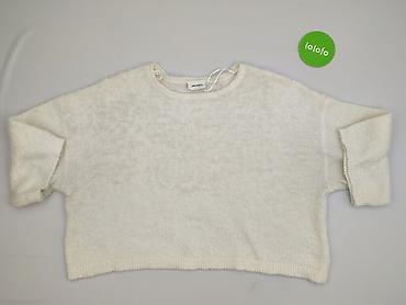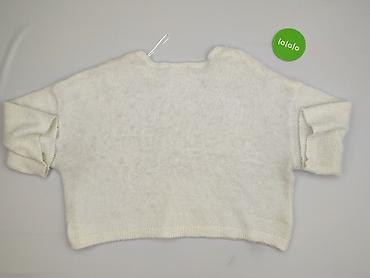 Damski sweter z długim rękawem, „włochaty”, kremowy/ecru. - Rozmiar: M (EU M) – metka. - Fason: klasyczny pulower z okrągłym dekoltem, lekko wydłużony dół. - Dzianina o wyraźnym, ażurowym splocie i...
