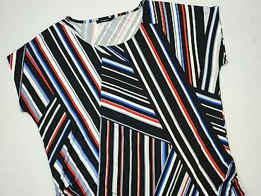 Bluzka damska Monnari, rozmiar M. - Fason: luźny, oversize z krótkim rękawem typu kimono - Wzór: pionowe pasy w kolorach granatowym i ecru - Dekolt: okrągły - Dzianina lekko marszczona/prążkowana, ...