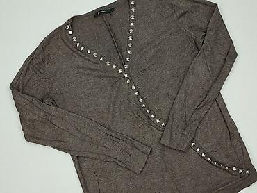 Damski sweter dzianinowy, rozmiar S. - Krój: krótki/cropped, z wyraźnym, elastycznym ściągaczem w pasie i przy mankietach - Dekolt: półokrągły (crew neck) ze ściągaczem - Rękawy: długie, lekko buf...