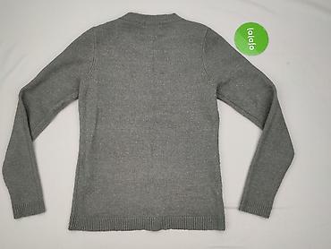 Szary sweter damski P-M - Fason: dopasowany, długi rękaw - Dekolt: okrągły - Detale: ozdobne srebrne napy/koraliki na ramionach - Dzianina: prążkowana, elastyczna - Skład z metki: 40% wiskoza, 32%...