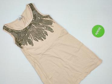 - Przód: ozdobny nadruk w odcieniach khaki przypominający pióra oraz aplikacje z koralików i cekinów przy dekolcie i ramionach