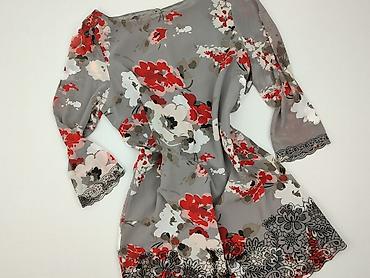- Krój: prosta linia, długość mini/przed kolano; rękaw 3/4 z lekkim bufowaniem; dekolt łódka