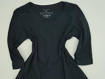 Czarna bluzka damska z długim rękawem - Krój: prosty, z dekoltem w serek (V-neck) - Rękaw: długi - Rozmiar z metki: M - Materiał: 94% bawełna, 6% elastan – miękka, elastyczna i oddychająca dzianin...