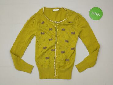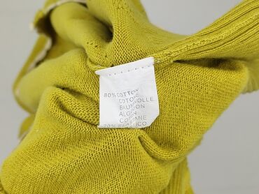 Sweter rozpinany damski w odcieniu musztardowym, wykonany z dzianiny o luźnym splocie. Posiada długie rękawy i otwarty przód, co sprawia, że jest idealny do noszenia na co dzień, dodając stylizacji...Stan: