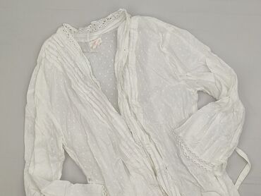 Biała narzutka/kimono plażowe F&F - Marka: F&F - Rozmiar z metki: S (EUR 36–38), obwód w biuście 85–89 cm - Kolor: biały - Materiał: lekka, przewiewna tkanina (wygląda na mieszankę bawełnianą; bar...