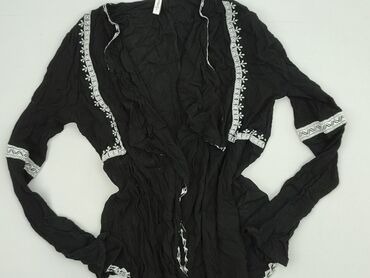 Czarna narzutka/kimono Esmara - Kolor: czarny - Krój: luźny, otwarty przód bez zapięcia - Rękaw: krótki, szeroki - Dół: lekko zaokrąglony, dłuższy tył typu high-low - Materiał: lekki, półprzezrocz...