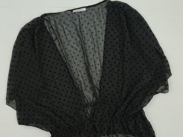 Kimono/narzutka damska Atmosphere, rozmiar M. - Kolor: czarno‑biały - Wzór: etno/geometryczny, gęsty print na całej powierzchni - Krój: luźny, otwarty przód bez zapięcia, krótkie kimonowe rękawy -...