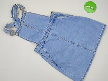 Jeansowa sukienka-ogrodniczka damska - Rozmiar: L (na metce) - Fason: mini, z przodem w stylu ogrodniczek - Materiał: denim/jeans w średnim niebieskim odcieniu, delikatnie sprany - Ramiączka...