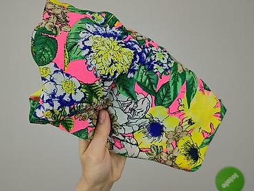 - Wzór: wyrazisty, wielobarwny print w kwiaty (żółte, białe, niebieskie) na neonowo‑różowym tle z zielonymi liśćmi