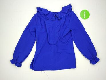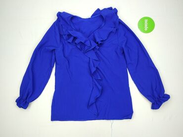Długi rękawNiebieska bluzka damska z długim rękawem i falbanami. Bluzka wykonana jest z poliestru z domieszką elastanu, co zapewnia komfort noszenia. Długie rękawy zakończone są delikatnymi falbankami przy mankietach, a dekolt w kształcie litery V ozdobiony jest kaskadowymi falbanami, które dodają elegancji. Idealna do stylizacji na co dzień, jak i na specjalne okazje.