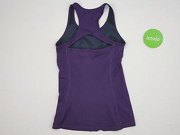 Fioletowy top sportowy damski typu tank - Rozmiar: XS (na metce) - Krój: bokserka z wycięciem na plecach (racerback) - Długość: sięga poniżej bioder (przedłużany fason) - Materiał: lekki, elastycz...