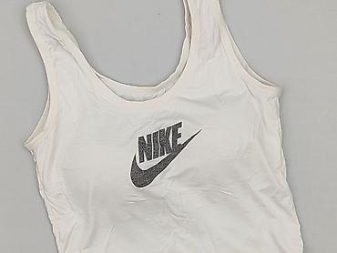 Nike – damski top sportowy bez rękawów - Model: koszulka typu tank top z plecami „bokserką” - Kolor: biały z dużym, szarym logo NIKE z przodu - Rozmiar z metki: L (wzrost 152–158 cm podany na metc...