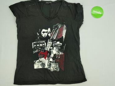 Biała koszulka damska z nadrukiem - Krój: luźny T‑shirt z krótkim rękawem i okrągłym dekoltem - Rozmiar z metki: XL - Nadruk z przodu: czarno‑złoty napis „Simplicity is the newest fashion” (rozłoż...