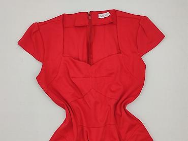 Czerwona sukienka damska z krótkim rękawem - Rozmiar: L (na metce) - Materiał: 95% poliester, 5% spandex – gładka, elastyczna dzianina zapewniająca komfort i dopasowanie - Krój: lekko rozkloszowan...