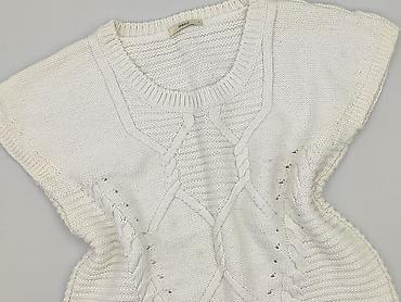 Ażurowy sweter damski PEP&CO - Rozmiar: M (metka) - Kolor: kremowy/ecru - Fason: krótki, lekko pudełkowy, z długim rękawem - Splot: dekoracyjny ażurowy wzór na całej powierzchni; dół, mankiety i d...