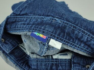 Używane, ale w idealnym stanie, dżinsowe ogrodniczki dla chłopca. Wykonane z denimu w kolorze ciemnego granatu. Na karczku umieszczona jest kieszonka z żółtą naszywką w gwiazdki. Idealne dla małego...