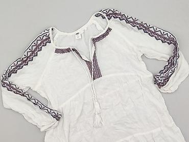 Bluzka damska Esmara - Model: tunika z haftem - Kolor: biały z jasnoniebieskimi haftami - Krój: luźniejszy, lekko wcięty w talii; dekolt okrągły - Rękawy: 3/4, wykończone ozdobnym brzegiem i ażuro...