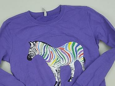 Fioletowa bluza damska Olivia, rozmiar S. Wykonana w 100% z bawełny – miękka i przyjazna dla skóry. Klasyczny krój z okrągłym dekoltem, długim rękawem oraz ściągaczami przy mankietach i u dołu. Z przodu duży nadruk zebry w kolorowe pasy zdobione drobnymi dżetami, które dodają blasku. Tył gładki. Idealna na co dzień, do jeansów i legginsów.