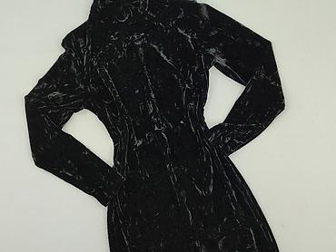 Klasyczna czarna welurowa sukienka o smukłej linii, podkreślająca sylwetkę, wygodna dzięki rozciągliwej tkaninie.