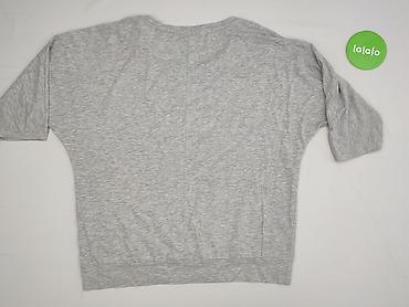 Damska bluzka z dzianiny, szara w drobne poziome prążki. - Fason: luźny, lekko rozszerzany do dołu (A-line), z zaokrąglonym dołem. - Dekolt: w kształcie litery V. - Rękaw: długi. - Materiał: miękk...