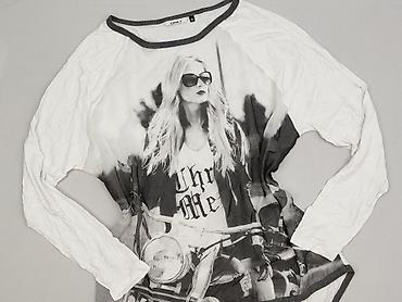 Bluzka damska ONLY, rozmiar S, z długim rękawem. - Kolor: biel w odcieniu ecru - Nadruk z przodu: kwiaty wiśni, napisy „Asia Gardenia” oraz grafika z motywem gór; subtelny napis u dołu - Dekolt: o...