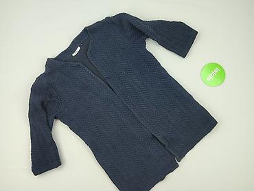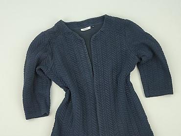 Ażurowy kardigan damski, granatowy - Krój: zapinany na guziki, dekolt w serek (V-neck) - Rękaw: długi - Wzór/dzianina: delikatna, ażurowa struktura na całej powierzchni; elastyczne ściągacze przy ...