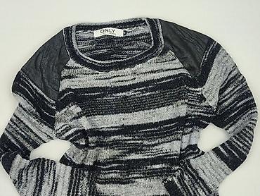 Sweter damski ONLY – model Our Story, rozmiar S - Fason: dłuższy, z lekko zaokrąglonym dołem; dekolt łódkowy - Rękaw: długi - Wzór: szerokie, poziome pasy w odcieniach szarości i czerni (melanż) -...
