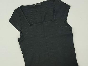 Czarna koszulka damska Lefties - Model: krótki top z krótkim rękawem - Wzór: pionowe pasy w odcieniach czerni (subtelny, żakardowy efekt) - Dekolt: okrągły - Rozmiar: EUR M (MEX 28) – metka widocz...
