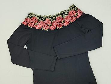 Bluzka damska z długim rękawem, czarna, dekolt w kształcie litery V. - Krój: lekko dopasowany, z subtelnym marszczeniem przy dekolcie, długość do bioder - Rękawy: długie z mankietem - Materiał: 55...