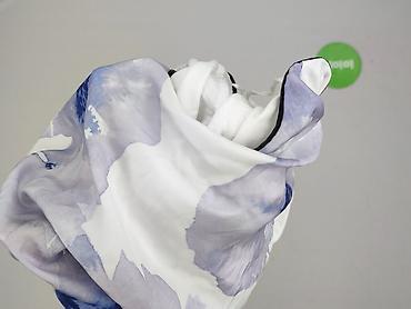- Wzór: duże, akwarelowe kwiaty w odcieniach niebieskiego i szaro-fioletu na białym tle (przód).