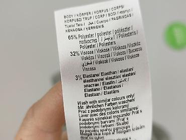 - Materiał: 65% poliester, 32% wiskoza, 3% elastan – miękki, lekko elastyczny, dobrze trzyma formę