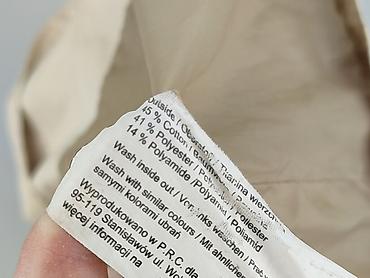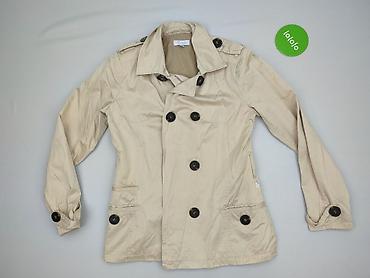 Beżowy trencz damski, rozmiar S - Klasyczny, dwurzędowy fason z kołnierzem - Regulowane patki przy mankietach - Kieszenie boczne - Pasek/szlufki w talii (widoczne szlufki) - Długość za biodra – zg...