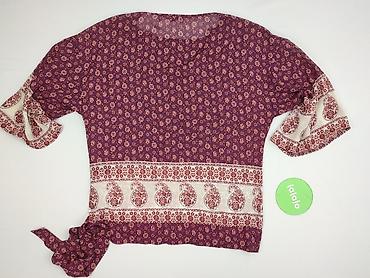 - Kolor/wzór: śliwkowy/fioletowy w drobne kwiaty; kontrastowe kremowe pasy z motywem paisley przy rękawach i na dole
