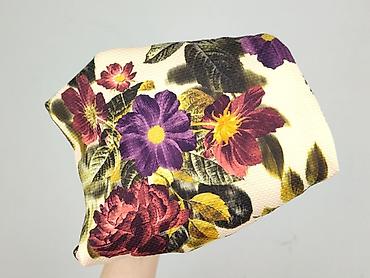 - Wzór: gęsty, kwiatowy print w odcieniach bordowego, fioletu, żółci i zieleni na jasnym tle