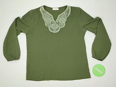 Bluzka damska z długim rękawem - Kolor: oliwkowa zieleń - Rozmiar z metki: M - Krój: swobodny, opuszczona linia ramion, okrągły dekolt - Rękawy: długie, zakończone szerokimi mankietami - Materiał:...