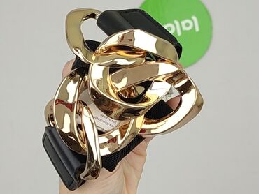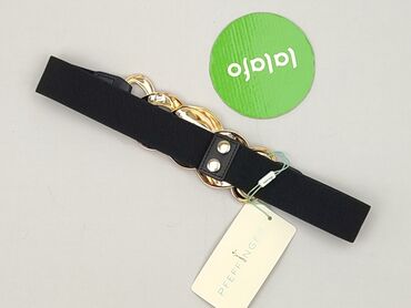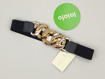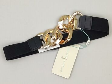 Pasek damski PFEFFINGER - Kolor: czarny z efektowną, dużą ozdobą w kolorze złota (trzy masywne, polerowane ogniwa). - Materiał paska: elastyczna taśma 70% poliester, 30% elastan. - Zapięcie: napy ...