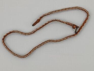 Pleciony damski pasek w kolorze koniakowym - Model: wąski, pleciony na całej długości - Kolor: ciepły brąz/koniak - Materiał: tworzywo/skóra ekologiczna o fakturze ziarna - Klamra: metalowa, w odc...