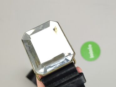 Damski pasek skórzany, czarny, z metalową klamrą - Materiał paska: skóra naturalna (gładka, półmatowa) - Kolor: czarny - Klamra: metalowa w kolorze srebrnym, owalna z podwójnym przeplotem (efekt s...