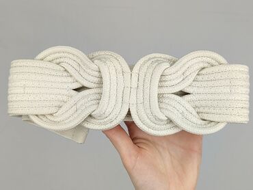 Pasek materiałowy w kolorze ecru/kości słoniowej, damski. - Materiał: gruba taśma z tkaniny (plecionka), delikatnie elastyczna, przyjemna w dotyku - Zapięcie: metalowa klamra w kolorze złotym typu...