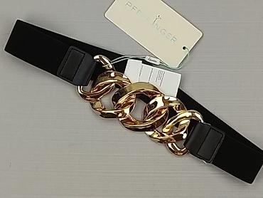 Pasek damski PFEFFINGER – elastyczny, czarny, z efektowną złotą klamrą-łańcuchem. - Model: pasek taliowy dla kobiety (adult, female) - Kolor paska: czarny - Materiał paska: elastyczna guma/taśma z...Stan:
