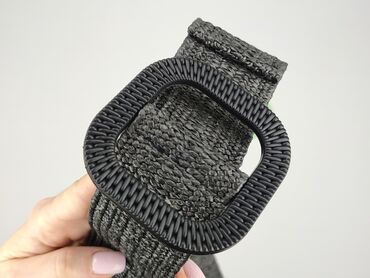 Czarny pleciony pasek damski z okrągłą klamrą - Materiał paska: elastyczna taśma o gęstym, plecionym splocie w kolorze czarnym - Szerokość: ok. 4–5 cm (wizualnie szeroki, model podkreślający talię...Pasek damski z plecionej taśmy, czarny