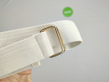 Biały pasek materiałowy z cekinami i klamrą typu podwójne D-ring. - Kolor: biały z złotymi/srebrnymi cekinami (sekcje ozdobne na długości paska) - Zapięcie: dwie metalowe obręcze D (srebrny kolor)...