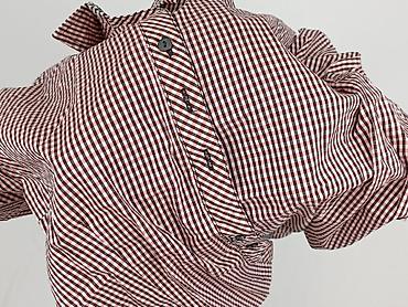 - Rękawy: długie, mankiety na guziki (kontrastowa wewnętrzna plisa w kratkę).