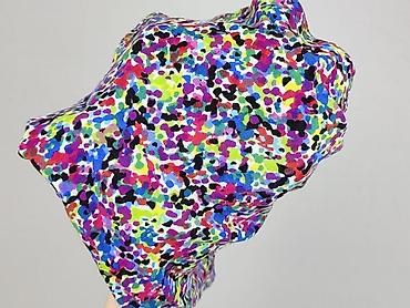 Bluzka damska ETTE LOU, rozmiar 44, Made in EU. - Krój: luźny, z krótkim rękawem typu kimono; lekko dłuższy tył. - Przód: lekka, półprzezroczysta siateczka z wielobarwnym, abstrakcyjnym nadrukiem....