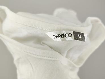 Bluzka damska Pepco, rozmiar S. - Kolor: jasny, pastelowy żółty (lemon). - Krój: lekko dopasowany, okrągły dekolt. - Rękawy: krótkie z wycięciami na ramionach (cold shoulder). - Nadruk: duży biały...