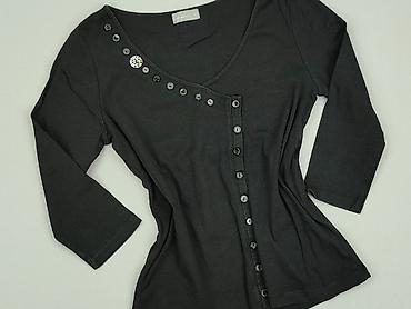 Czarna bluzka damska z długim rękawem - Krój: prosty, z dekoltem w serek (V-neck) - Rękaw: długi - Rozmiar z metki: M - Materiał: 94% bawełna, 6% elastan – miękka, elastyczna i oddychająca dzianin...