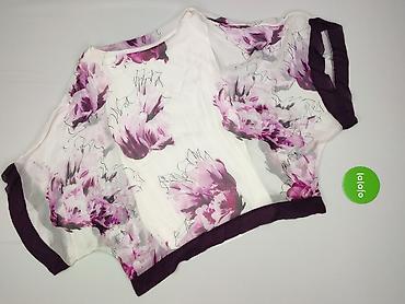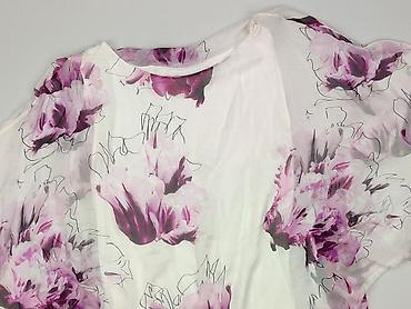 - Wzór: duże kwiaty w odcieniach fioletu, różu i bieli na jasnym tle