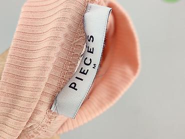 Bluzka damska PIECES, rozmiar M - Kolor: jasny róż - Fason: dopasowany, z okrągłym dekoltem - Rękawy: krótkie z delikatnymi marszczeniami przy ramionach (lekko bufiaste) - Dzianina prążkowana – el...Rozmiar: