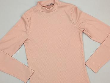 Bluzka damska z długim rękawem, rozmiar M. Kolor: jasny pudrowy róż. Dekolt w kształcie litery V. Dół wykończony tunelem ze sznurkiem do regulacji/ściągnięcia, co pozwala dopasować szerokość i dług...